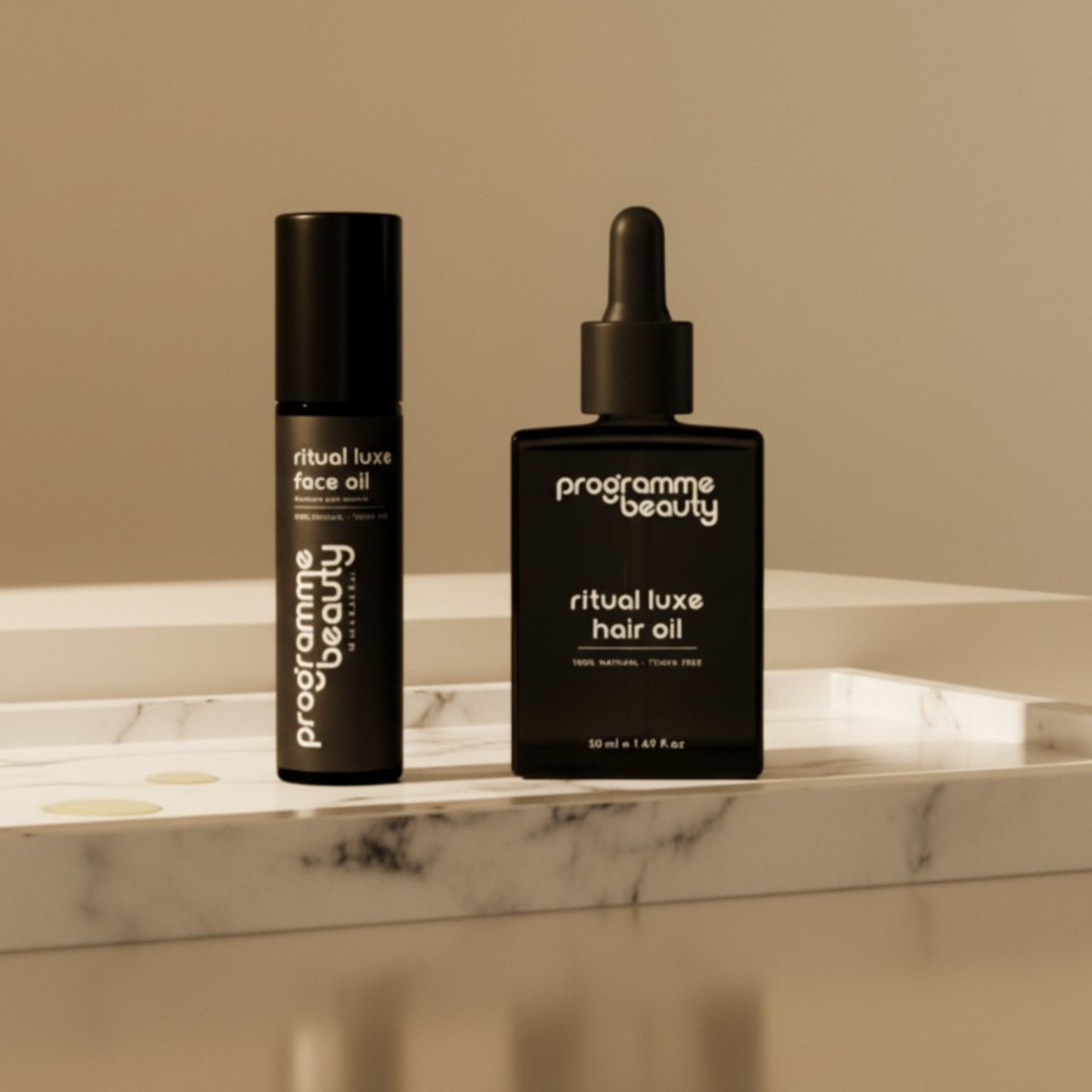 The Complete Ritual More than a duo β itβs balance in a bottle. Infused with ancient Ayurvedic wisdom, the Ritual Luxe Hair & Face Oils rejuvenate, illuminate, and restore β bringing harmony to hair and skin. Two essentials. One timeless ritual.